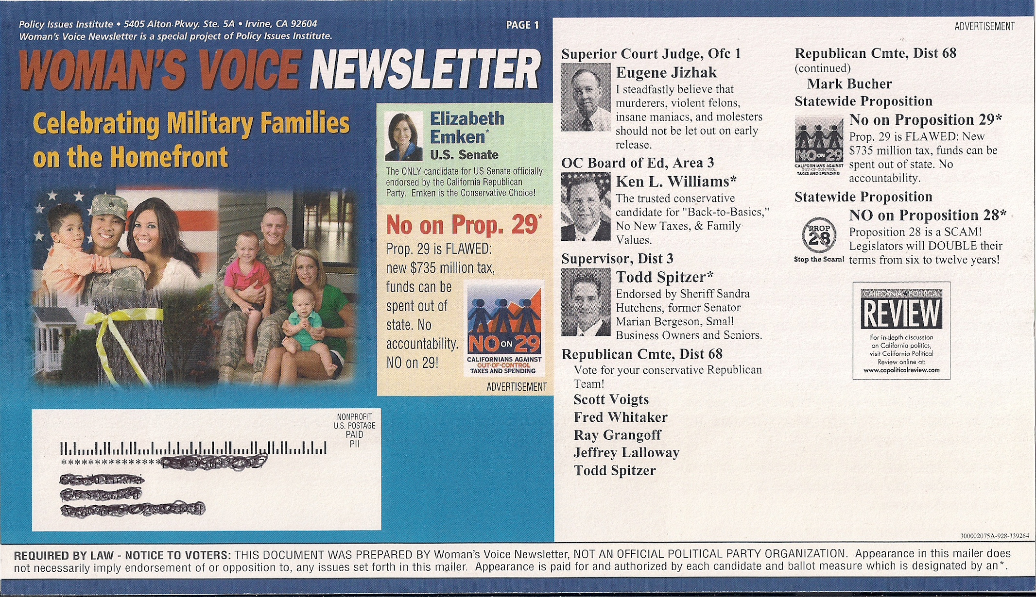 Eugene Jizhak– He earned his J.D. from Newport University School of Law before becoming a general practice attorney. He has appeared on a lot of slate mailers that I have seen but does not appear to be running any direct mail pieces. According to his profile on slate mailers he appears to oppose the early release of “Insane Maniacs” which might be one of my favorite lines from this election.
