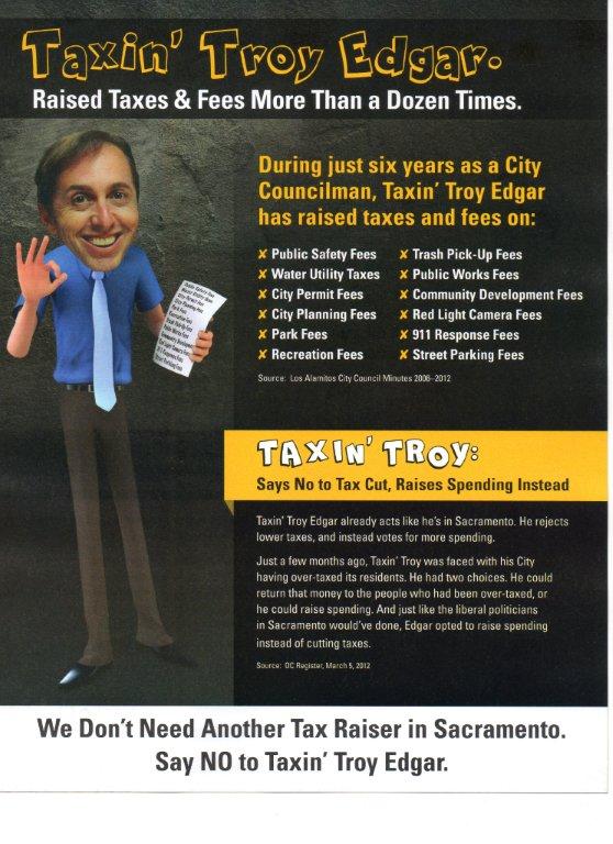 This hit piece came across the wire yesterday from a reader. Travis Allen has put down a piece of mail that makes Troy Edgar look really bad. Take a look at the piece posted below: