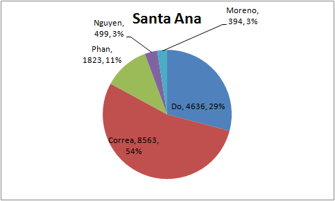 Phan and Do won a combined 61% of the vote in Garden Grove, 65% in Fountain Valley, 66% in Westminster, 68% in Midway City, and 40% in Santa Ana.  Adding Nguyen in increases that to 66% in Garden Grove, 68% in Fountain Valley, 70% in Westminster, 72% in Midway City, and 43% in Santa Ana.
