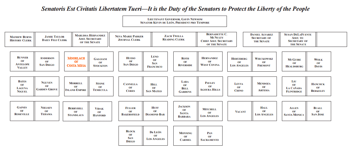 The Registrar of Voters certified the 37th Senate District Special Election on Friday night, John Moorlach took the oath of office yesterday afternoon, and he will be on the Senate Floor at his desk for the first time at 2:00 PM today while Don Wagner will be back on the Assembly Floor at 12:00 PM today.