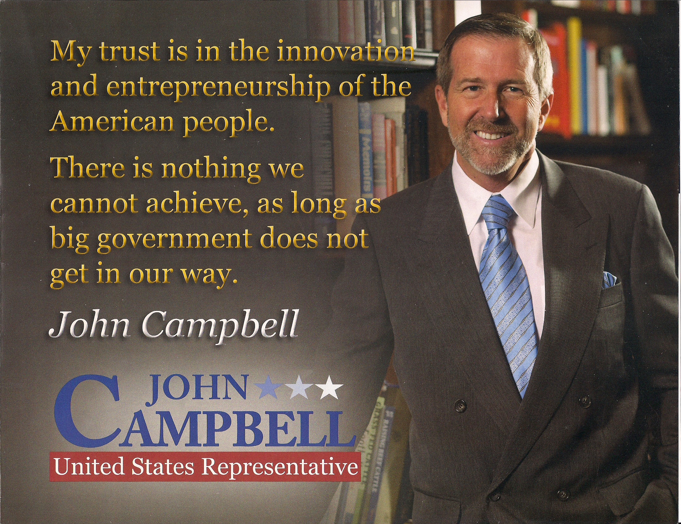 Webb speaks of his military and business background. He speaks of Campbell’s votes on TARP, Cash for Clunkers, Sarbanes-Oxley expansion, Don’t Ask Don’t Tell, and the STOCK Act. Webb pledges to serve only three terms.