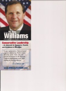 Assemblyman Don Wagner notes that the pundits thought he’d lose in the 2010 primary and how they were wrong. Wagner notes he’s the sole Republican in the race and regarding his Democratic opponent: “I have pictures of her. (Pause for audience reaction.) Pictures of her with the likes of Dennis Kucinich and Maxine Waters.”